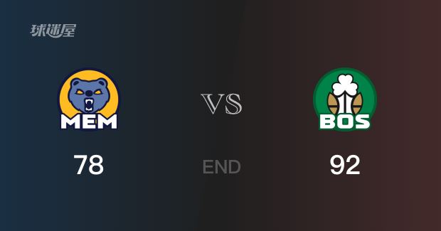 全场比赛结束,最终凯尔特人以92-78击败灰熊,成为获胜方。凯尔特人球员沃尔什砍下全队最高17分,外加3篮板2助攻、巴锡14分11篮板2盖帽、冈萨雷斯12分4篮板5助攻1抢断2盖帽,他们是凯尔特人队里得分最高的三名球员。