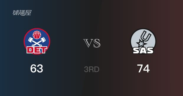 三节战罢,马刺以74-63领先活塞11分。
