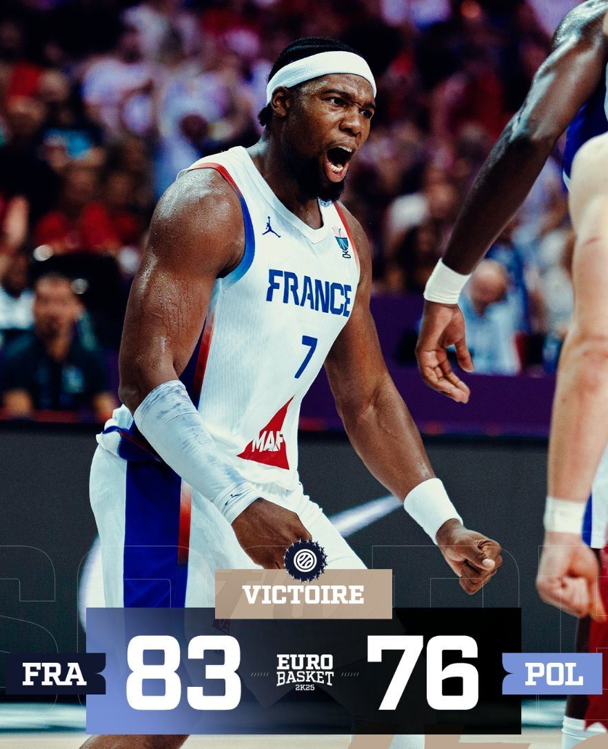 北京时间9月3日,2025年男篮欧洲杯小组赛,法国男篮83-76逆转波兰男篮。这场比赛法国队是逆转取胜,波兰一度领先到13分之多,是法国队长亚布塞莱吹响了反攻号角,在第三节才抹平差距,末节一度帮助法国领先波兰11分之多。
