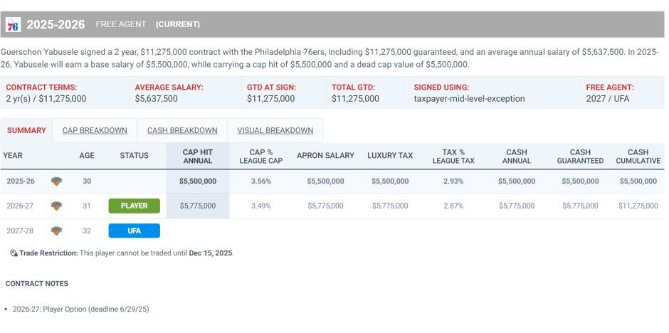 今夏尼克斯以两年1200万的合同从自由市场上签下亚布塞莱,他上赛季在费城还是拿顶薪,他的拼搏之心被尼克斯所看中,亚布塞莱在NBA是可以打3-5号位的顶级3D前场球员,尼克斯这两年1200万不会亏。