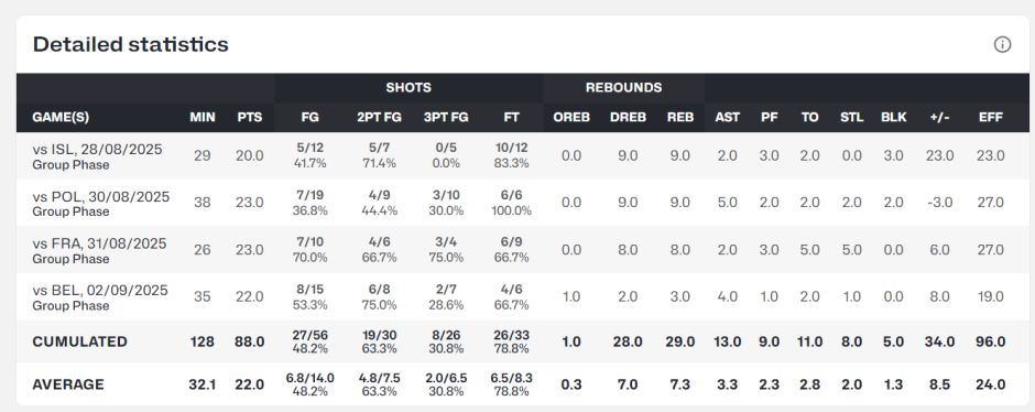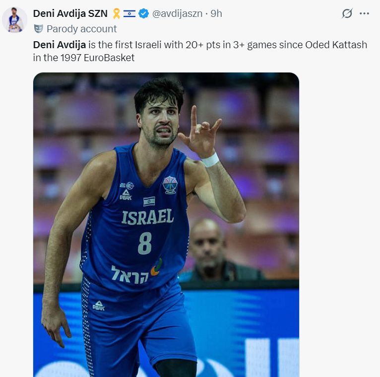 根据以色列媒体的报道,阿夫迪亚是1997年奥德-卡塔什后首位能在欧洲杯场均超过20分的选手,创造28年纪录。