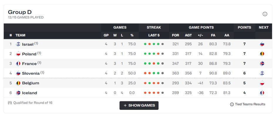 此役后以色列3胜1负排在D组第一,只要在最后一场小组赛中击败斯洛文尼亚,世界排名第39位的以色列就会以D组第一的身份晋级淘汰赛,这对于以色列球迷来说是振奋人心的事件。