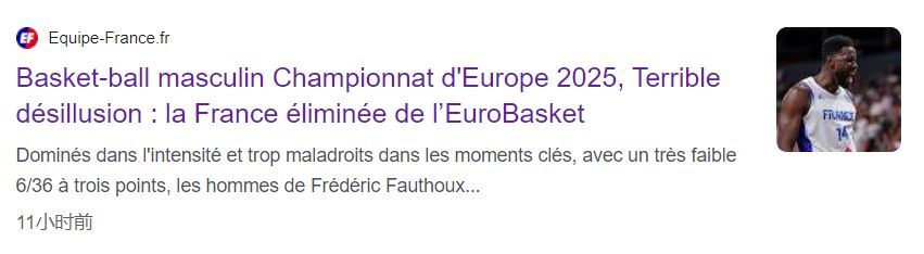 法国媒体《Equipe》评价了这场比赛,标题为:可怕的毁灭,法国男篮就连欧洲杯八强都未能进入。