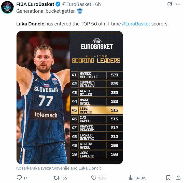 6.东契奇场均34分本届欧洲杯第一;